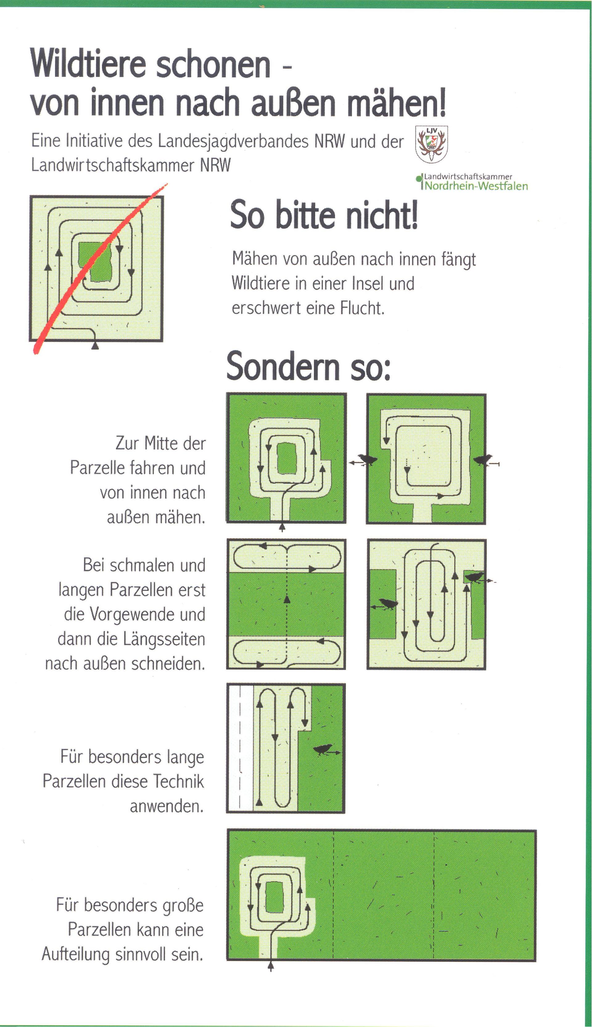 Die HelferInnen suchen die Wiese strukturiert ab. Dabei bilden sie eine Reihe und durchkämen die Wiese eng geschlossen Reihe für Reihe. Je höher das Gras auf der Wiese steht, desto enger steht die Gruppe zusammen. Der Stock dient dazu, um unter höhere Gräser oder Ochsenzungen nach den Tieren schauen zu können. Außerdem kann man sich darauf auch zwischendurch gerne einmal abstützen, denn der Tag kann lange werden. Getränke und etwas zum Essen gehört also mit in die Tasche. Oft werden Maulwurfshaufen mit Kitzen verwechselt und ebenso werden Kitze oft schnell übersehen. Die Suche erfordert deshalb im hohen Gras Aufmerksamkeit und Konzentration.